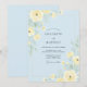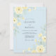This design showcases a soft sky blue palette accented with delicate watercolor ranunculus in shades of pale yellow. Whispy green foliage winds across the background, creating a romantic and airy aesthetic. The watercolor style offers a serene and elegant feel, capturing the essence of a fresh spring atmosphere.