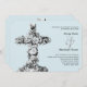 Pale Blue Floral Cross Catholic Wedding Invitation