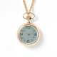This women's watch has a geometric design of sort of flat-ended ovals repeating across the design in brown on a field of pale blue.