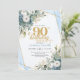 Pale blue gold leaves soft chic 90th birthday invitation
