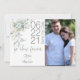 SAVE THE DATE | 'we chose forever' calligraphy message - Add Your favourite photo to this dusty blue watercolor floral invitation for your wedding save the date - features pale sage greenery , and light dusty blue roses Customise text, font style, colour and size. Modern block style date.
