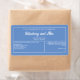 A label for soap or cosmetics products with a pale blue background and white text. Features space for your company name, ingredients, business information, and more.