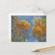 Painted pale fall tree canopy, ringing in fall with yellow and orange tree leaves.