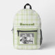 Pale Green Gingham Plaid Pattern Name and Photo Printed Backpack