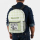This backpack features a pale jade green gingham style plaid pattern with a darker solid green on the lower sides, a custom name on the upper front, and a black and white photo on the pocket. Replace the placeholder photo with your own favourite to make this backpack your own! A black and white filter is applied so your colour photo will display as black and white. Try it with your own photo right on the product page!