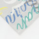 Nice pale grey (custom colour) fleeceblanket personalised with your own name in a cool pattern design, written in bluish handwritten font-styles