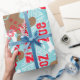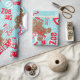 Country Christmas Winter Gift Wrap with Gingerbread men Ice Turquoise blue, white and red. Name Changing Collage in the colours of your choice. Make someone feel very special with personalised wrapping paper with any names you choose. Just type their name. Click customise, edit to change background colour. Simple name and message template or add photos to customise yourself. Custom Birthday, Congratulations Christmas or Any Day, Cool, Modern, Cheery, Happy, fun and festive. Snowy Shabby Chic Icy Blue Antique book background and snowflakes.