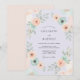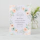 This design features a soft palette of pale lavender, mint green, and peach. Delicate watercolor roses and teal anemones are arranged with airy green leaves. It captures a whimsical and romantic aesthetic perfect for a spring or summer event. The artistic botanical elements create an ethereal and dreamy atmosphere.