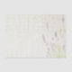 This tissue paper features pale lavender flowers beside script against a beige background.