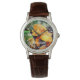 I like the illustrative watch with the lady on it. It is a great reminder that I am blessed and it has a very sturdy leather band. The colors are true and vibrant. Love the color of the Leather also. Very nice.