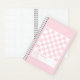 This notebook features a soft pink checkerboard design with airy spacing and a clean white frame for a calm, refined look. Three customizable text fields let you add a name, subject, and term or date, creating a personalized cover that feels gentle and organized. With its light color palette and subtle geometric pattern, this design is ideal for those who prefer minimal visuals with a polished, thoughtful feel.