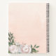This stylish Elegant Woman Celebrating of life guest book featuring lush bouquet blush pink Roses and rustic flowers , a photo of your loved one in elegant white frame, their name and dates of life and text in loving memory on peach pink background. The reverse side of this guest book is peach pink coloured with flowers and lush greenery .
