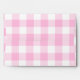 A large blush pink and white gingham pattern on envelopes to fit 5x7" cards and invitations. These are very pretty, and girly.
