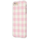 Modern gingham chequered pattern iPhone 6 Plus case in Pale Pink. Strong, impact resistant Case-Mate protective gingham check design iPhone 6 Plus cover. Allows access to all ports, sensors and controls. For iPhone 6 and other iPhone, iPad or Samsung Galaxy smartphone models select the case that you require from the Form Factor tab.