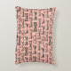 This throw pillow has a variety of different eyeglasses and glasses frames in black and white on a pale pink.