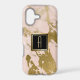 Here is an attractive faux marble phone case that adds a bit of gilded gold sparkle on a very pale pink background to make it unique. At the centre is your monogram in gold on a black square banner that is double lined in matching gold. Beautiful! *Please note - the metallic look is simulated, and the case does not contain metallic paint, but only the image.