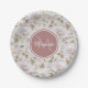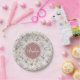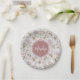 Pale Pink Rose Pattern With Monogram and Name Paper Plate