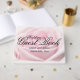 A pale pink rose provides the prety background for this elegant and traditional wedding guest book. Wedding Guest Book is written in a fancy font. The bride and groom names and their wedding date is written below. Chic floral design for a summer wedding.