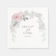 Elegant pink rose arch sets off the bride and groom's names and wedding date on these paper napkins in a variety of sizes and styles. Choose cocktail, luncheon or dinner size and coined or non-coined style. This is part of a wedding stationery collection with matching wedding accessories. Design created for the BarefootBride™ © by WhimsicalArtwork™