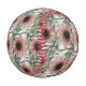 This awesome baseball features a beautiful photograph of a pale pink sunflower. The sunflower is naturally pink and the petals have a pale pink outer ring and a darker pink inner ring. The middle where the seeds are is black. This photograph was taken in a garden.