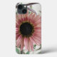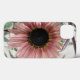 This awesome iPad mini case features a beautiful photograph of a pale pink sunflower. The sunflower is naturally pink and the petals have a pale pink outer ring and a darker pink inner ring. The middle where the seeds are is black. This photograph was taken in a garden.