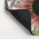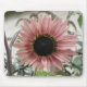 This cute mousepad features a beautiful photograph of a pale pink sunflower. The sunflower is naturally pink and the petals have a pale pink outer ring and a darker pink inner ring. The middle where the seeds are is black. This photograph was taken in a garden.