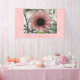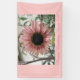 This awesome banner features a beautiful photograph of a pale pink sunflower. The sunflower is naturally pink and the petals have a pale pink outer ring and a darker pink inner ring. The middle where the seeds are is black. This photograph was taken in a garden.