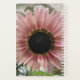 This awesome planner features a beautiful photograph of a pale pink sunflower. The sunflower is naturally pink and the petals have a pale pink outer ring and a darker pink inner ring. The middle where the seeds are is black. This photograph was taken in a garden.