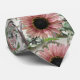 This pretty tie features a beautiful photograph of a pale pink sunflower. The sunflower is naturally pink and the petals have a pale pink outer ring and a darker pink inner ring. The middle where the seeds are is black. This photograph was taken in a garden.