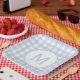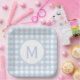 Dare to be different with this classic chequered gingham pattern in classy powder blue with a white circular place to add your monogram in a matching blue fancy block font! Replace the initial with your own...choose your font or remove the monogram and add your own design. Perfect for baby showers, weddings, anniversaries, reunions and luncheons.