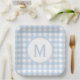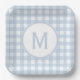 Pale Powder Blue Gingham Pattern Monogram Paper Plate