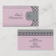 Pale rose pink leather look and pattern accessories business card template featuring one pale rose pink band with seams and one grey with a button in leather style-not real leather just a PRINTED image and geometric pattern in grey and pale rose pink. This modern yet with a retro flair business card template is fully customisable.