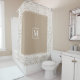 Pale taupe and white damask pattern and square with scalloped borders shower curtain. It showcases a pale taupe square with scalloped borders in the centre with a damask border and your monogram. You can personalise it with your family name and monogram.