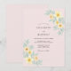 Delicate pale yellow blossoms and soft green foliage adorn this light pink backdrop. The watercolor floral accents evoke a gentle, romantic atmosphere, perfect for a springtime celebration.