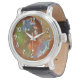 Share your love of fossils with a beautiful watch that features large white numbers in an Arts & Crafts style font on a stunning image of an opalised fossil ammonite shell. This creature is a Sphenodiscus lenticularis from the late Cretaceous period and can be found on many continents. It has an intricate suture pattern and smooth surface.