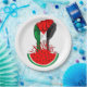 Palestine Flag on Revolution Fist Symbol of freedom coming out from a Watermelon. In occupied Palestine, watermelon is a symbol of resistance. With its colours mirroring the Palestinian flag, the fruit can be seen from the stone walls of Gaza to the galleries of Ramallah, hinting at the political history of a cherished summer fruit. As the Israeli occupiers supremacy did not allow the Palestinians to expose their own Red white black and green original Flag.