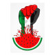 Palestine Flag on Revolution Fist Symbol of freedom coming out from a Watermelon. In occupied Palestine, watermelon is a symbol of resistance. With its colours mirroring the Palestinian flag, the fruit can be seen from the stone walls of Gaza to the galleries of Ramallah, hinting at the political history of a cherished summer fruit. As the Israeli occupiers supremacy did not allow the Palestinians to expose their own Red white black and green original Flag.