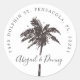 A beach inspired wedding address label sticker featuring an image of a single palm tree.
