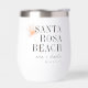 Impress your destination wedding guests with these chic and modern personalised wine tumbler wedding favours. Design features a light tropical peach palm frond illustration with your wedding destination aligned at the right (shown with Santa Rosa Beach) in classic serif lettering. Add your names beneath in handwritten cursive script, as well as the year. Leaf position can be adjusted, and colours can be changed to match your wedding colours using Zazzle's design tool.