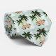 a sharp tie with tiny abstract palm trees on a light green background .