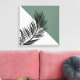 Nordic style minimal design with black palm leaf decoration and white and green triangles