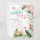 These invitations feature palm leaves with tropical flowers and fruits on a white background. This invitation is easily customised for your event by simply adding your details.
