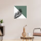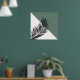 Nordic style minimal design with black palm leaf decoration and white and green triangles
