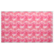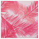 Fabric in a print of overlapping palm leaf silhouettes, in shades of deep coral pink and peach, against a pastel shell pink background