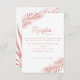 Simple and elegant, this rose gold tropical reception card has a palm leaf in opposite corners, and a clean white background. On the back is a rose gold palm leaf. Find the matching invitations and the rest of the wedding suite in the collection, prefect for tropical beach destination weddings.