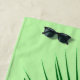 Beach towel in a tropical palm leaf silhouette in dark emerald green against a light lime green background