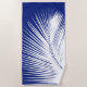 Palm Leaf Silhouette, Navy Blue and White Beach Towel