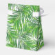 Modern Palm Leaf Pattern Tropical Destination Wedding Favour Box in bright vibrant lime green, white, and gold with elegant script names and wedding date custom text.