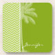 Palm on Retro Apple Green Chevron Stripes Coaster