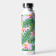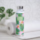 The bottle looks even better in real life. The ice cubes I put in lasts all day! I have my bottle with me all the time. It's summer and having something cold to drink feels amazing. With this bottle I always have something super cold. I have only tried the hot drink once and it lasted a long time as well. The color blue is a navy blue and the white printed on it is vibrant. It printed perfectly. I love my personalized smile water bottle.